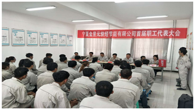 2018年5月31日,經(jīng)固原市總工會、金昱元集團公司工會同意,金昱元廣拓能源有限公司工會委員會根據(jù)《中國工會章程》和《工會基層組織選舉工作條例》,按照民主程序,組織寧夏金昱元炔烴節(jié)能有限公司召開了首屆職工代表大會,選舉產(chǎn)生了首屆基層工會委員會委員和工會主席。