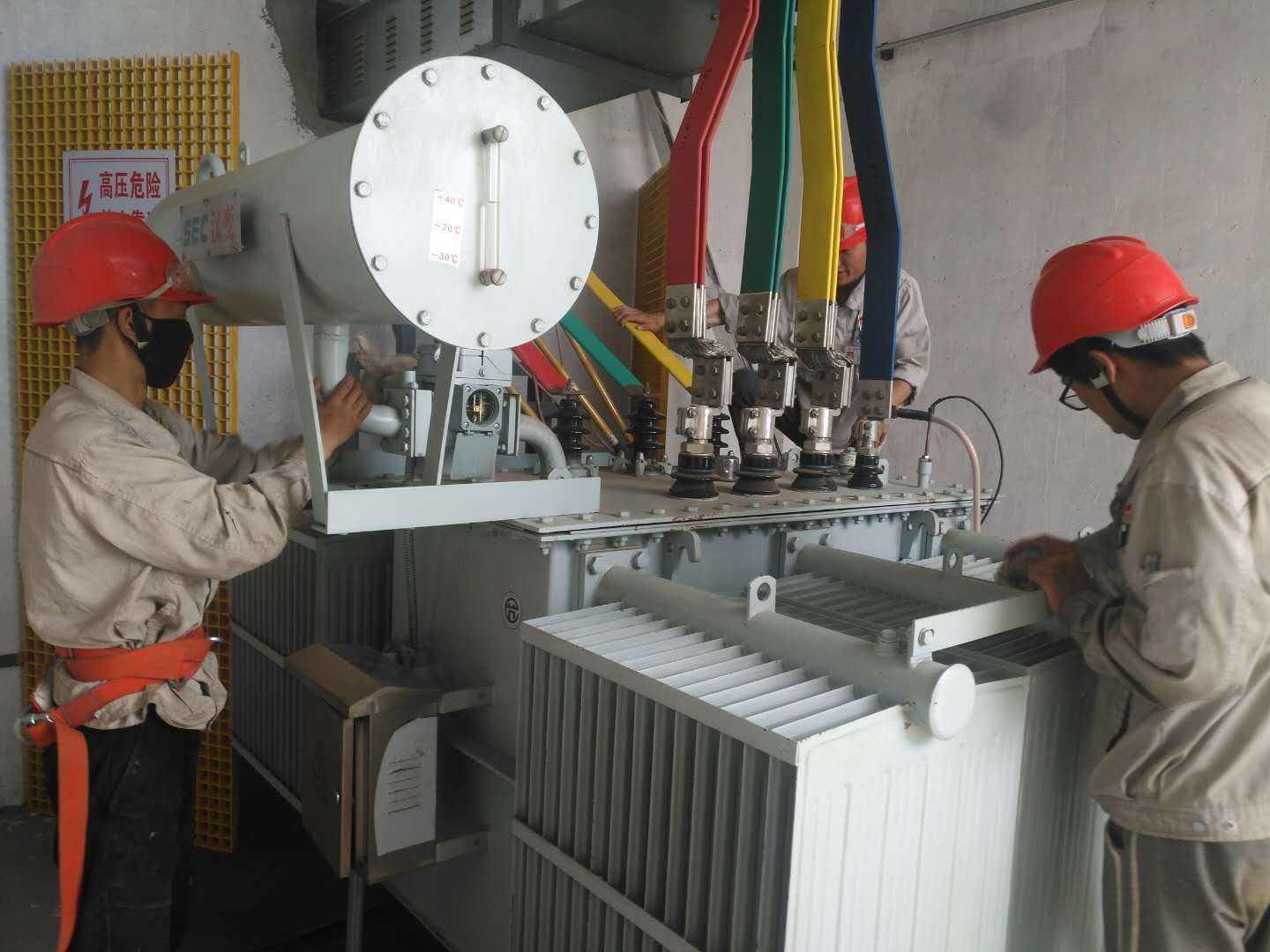 走進檢修現(xiàn)場,我們看到的是他們忙碌的身影,一個個或蹲在變壓器上、或坐在配電柜上、或騎在母線橋上、或坐在地上,不是緊固螺絲,就是為設備除塵,不是更換電抗器就是更換接觸器,不是擦拭抽屜就是擦拭柜面,不是當監(jiān)護人就是做工作的執(zhí)行人,不是跑著抓安全就是落實安全措施,由于生產(chǎn)的需要,大家加班加點,不分晝夜,檢修期間,工人們的工作是沒有所謂的朝九晚五,按部就班,每天的檢修項目什么時候完成什么時候下班,有時晚上七八點了還未吃飯。每天當他們走向熟悉的崗位,等待將變壓器、配電柜斷電,掛接地線,辦理第二種工作票、危害分析票、倒閘操作票,然后填寫簽字,落實安全措施,再進行除塵、螺絲緊固、元器件更換。他們不敢有絲毫懈怠,因為生產(chǎn)的每一個環(huán)節(jié)都至關重要,都關系到設備運行的正常與否,生產(chǎn)的正常運作。每一個變配電室里都凝聚著工人們辛勤勞動的點滴,再苦再累他們都堅持工作,都在默默奉獻自己火熱的青春年華。