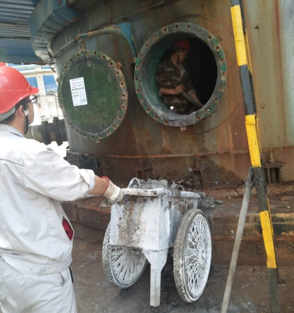 設(shè)備會在溫度、壓力的波動下產(chǎn)生交變應(yīng)力導(dǎo)致承壓設(shè)備的材料疲勞,也會在介質(zhì)腐蝕作用下使得承壓設(shè)備的壁厚減薄或材質(zhì)劣化,因此為了保障使用安全,必須對在用鍋爐壓力容器進(jìn)行檢測,雖然檢測過程簡單,但需要的準(zhǔn)備卻是特別多,鋼管、踏板、打磨。在爐膛內(nèi)搭腳手架,一層一層,像蓋樓房一樣,將所需要的材料從小小的人孔門送入,還要防止架手架對管壁造成傷害,可以想象在這過程中的艱辛與困難,最可愛的人,為你們喝彩。