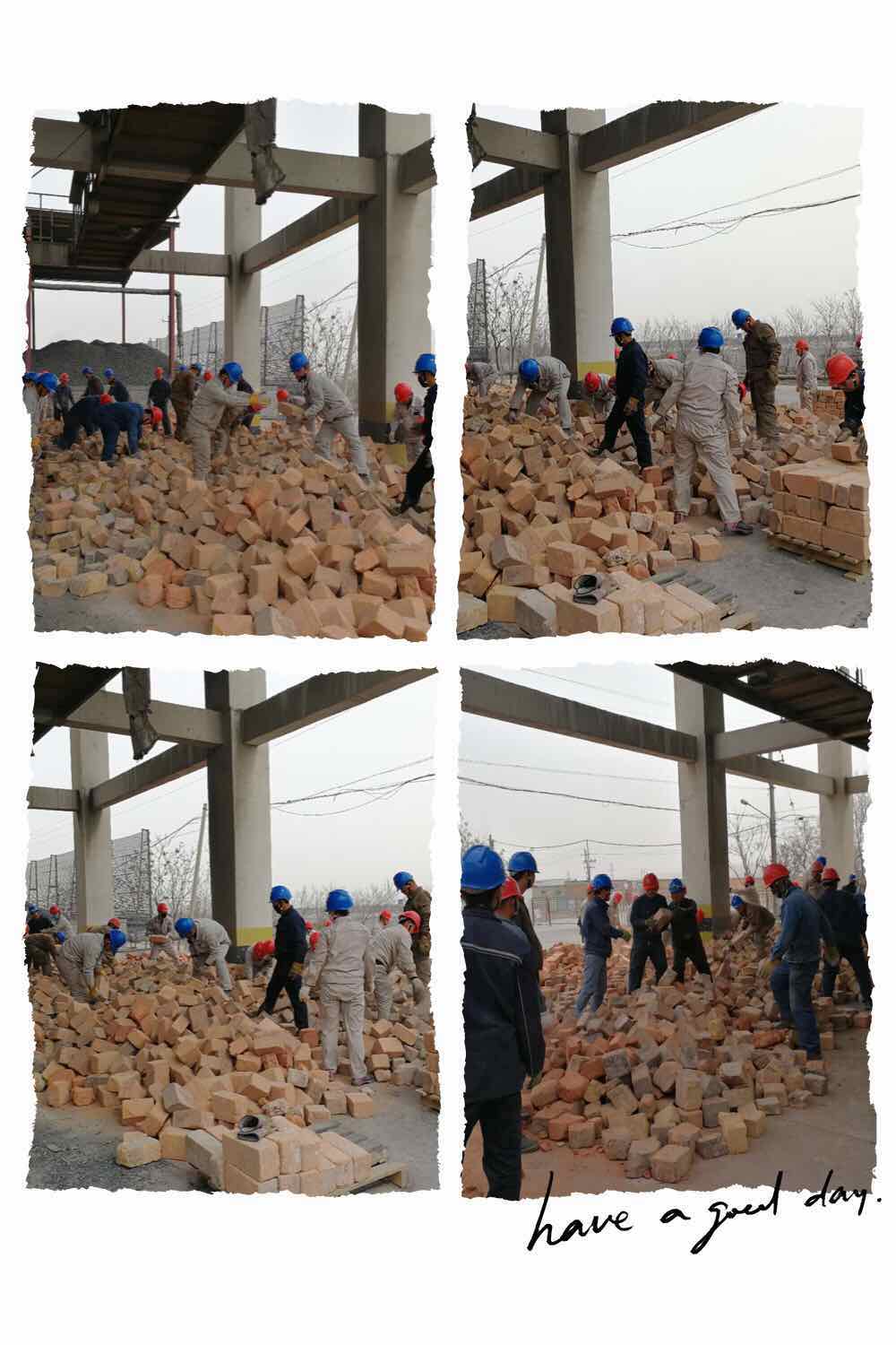 近幾天,公司領(lǐng)導(dǎo)帶領(lǐng)各裝置日勤人員,篩檢白灰窯拆除下來的能重復(fù)利用的舊耐火磚,大家齊心協(xié)力,沒有一句怨言,有的只是埋頭苦干,正是這樣一群可愛的人將美好的希望播種在白灰窯的各個角落,默默堅守辛勤耕耘等待著收獲,絕緣抗壓的勞保鞋,厚實的手套是他們作戰(zhàn)的防護(hù)裝備,任憑天氣如此炎熱都不會拋棄,他們時時刻刻把工作放在心中,讓“勞動”創(chuàng)造者最美的價值。