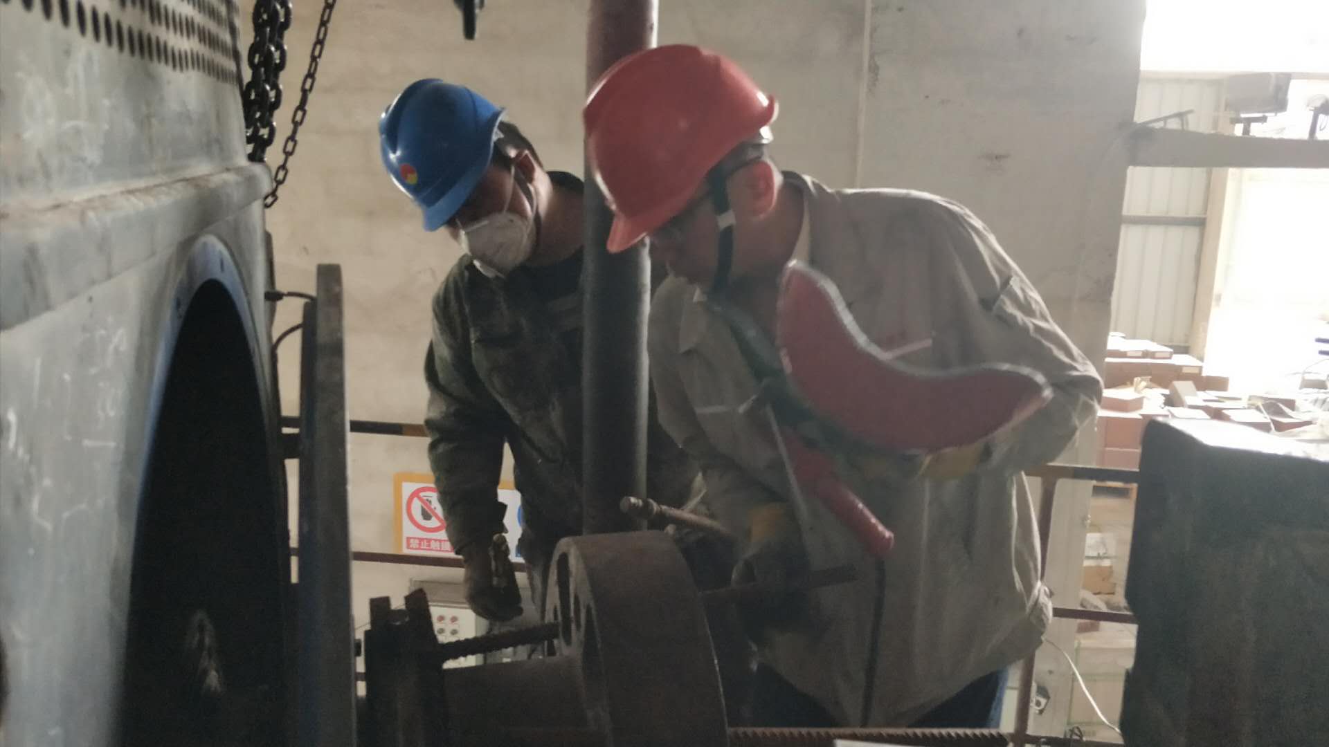 5月27日,檢修人員頂著大風(fēng)降溫,加班加點完成烘干破主電機(jī)和生料磨輥壓機(jī)側(cè)擋板檢修。