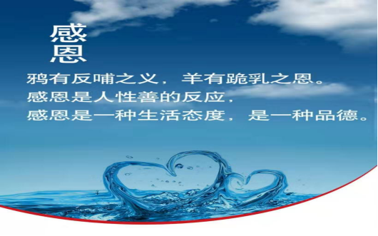 關(guān)愛員工是企業(yè)愛的體現(xiàn),員工感恩企業(yè)則是對愛的回報(bào);關(guān)愛和感恩的和諧統(tǒng)一形成其樂融融的企業(yè)文化。只有懂得感恩的人,才能對社會(huì)對集體對他人充滿感激,并將這種感激轉(zhuǎn)化為奉獻(xiàn)企業(yè)的實(shí)際行動(dòng)。是企業(yè)為我們提供了工作和學(xué)習(xí)的機(jī)遇,為我們的發(fā)展鋪設(shè)和搭建了華麗的舞臺,我們豈有不感恩之理呢?