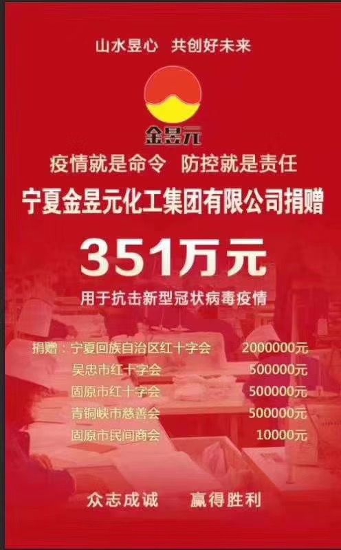 一方有難,八方支援是中華民族自古以來(lái)的優(yōu)良傳統(tǒng)。如今我們正處于疫情防控關(guān)鍵期,社會(huì)各界都在積極統(tǒng)籌調(diào)配資源。寧夏金昱元化工集團(tuán)也不甘落后,相繼向自治區(qū)、吳忠、青銅峽、固原捐款351萬(wàn)元,向社會(huì)各界捐贈(zèng)近千噸消毒液。