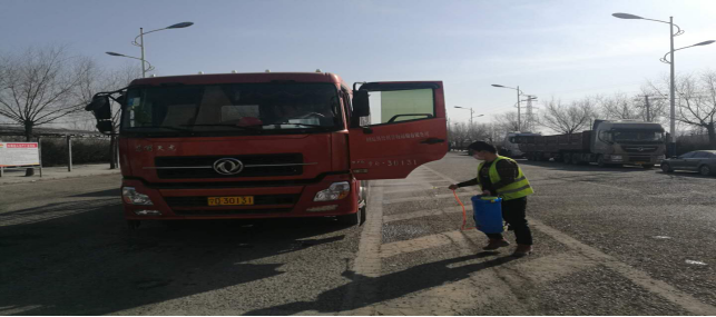 在公司北大門,他們對進出廠區(qū)職工及車輛登記,嚴格“疫情”防控工作。