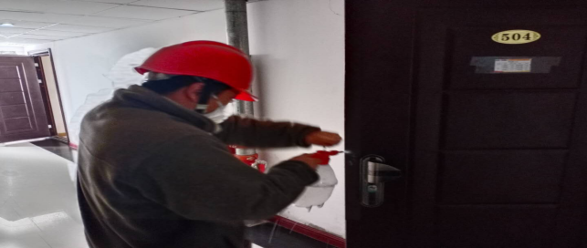 在園區(qū)南門,當日截止下午17時整,他們檢測、消毒、登記車輛61輛,人員64人,車輛正常,人員體溫均在正常范圍。