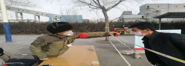 在園區(qū)南門,面對(duì)寒風(fēng),他們從容不迫,是責(zé)任,更是忠誠(chéng)的奉獻(xiàn)。當(dāng)日截止下午17時(shí)整,他們檢測(cè)、消毒、登記車輛53輛,人員53人,車輛正常,人員體溫均在正常范圍。