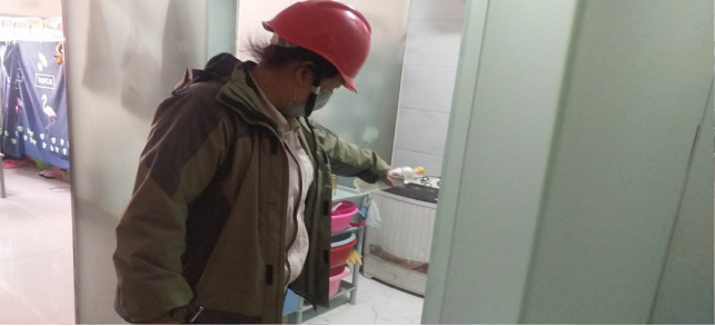 擦拭操作臺、門把手,工作的有條不紊。