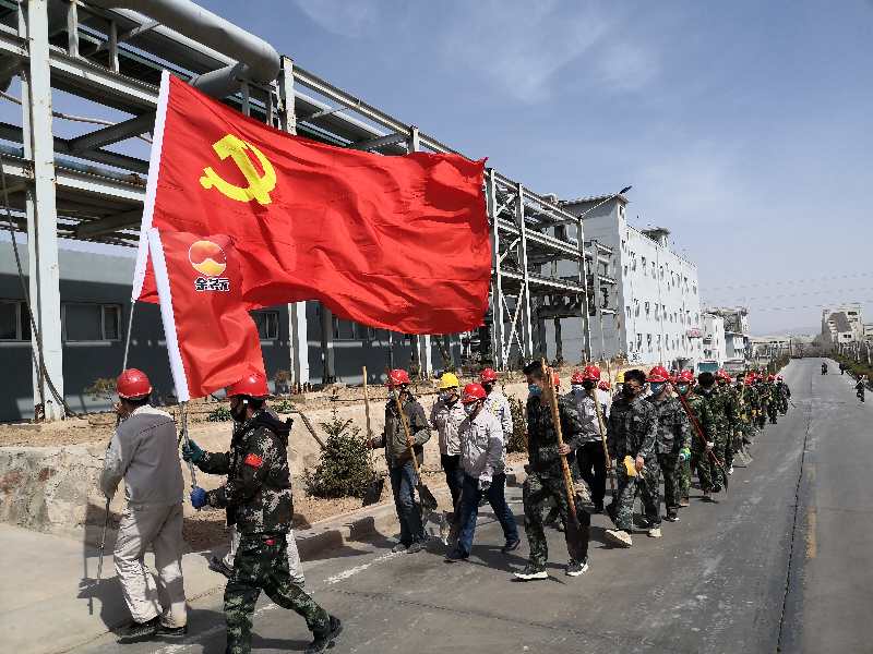 疫情防控下,黨員帶頭堅守一線不松懈。化工公司黨支部書記賈存富帶頭奔赴綠化作業(yè)一線,組織各單位黨員對液化崗位土地進行平整,身體力行踐行“不忘初心,牢記使命”。