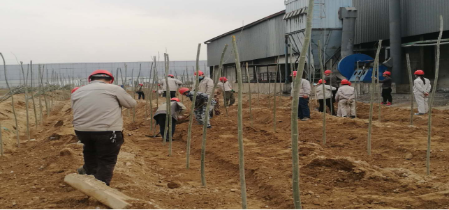 春回大地,生機勃發(fā)。又是一年桃紅柳綠時,為美麗環(huán)境,進一步增強全體職工的環(huán)保意識,4月7日,在公司總經(jīng)理吳紅衛(wèi)的帶領(lǐng)下,全體管理人員及部分職工代表50余人,一同在廠區(qū)進行義務(wù)植樹活動,用實際行動助推金昱元生產(chǎn)生活區(qū)環(huán)境美化綠化,以改善崗位辦公環(huán)境為契機,營造和諧生態(tài)環(huán)境。