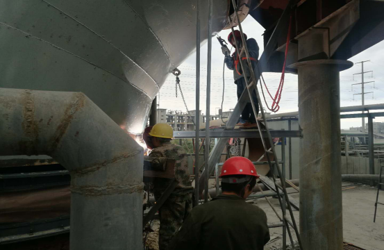 此次大修公司更換窯磚、窯頭密封改造、輥壓機(jī)柱釘輥更換、更換預(yù)熱器掛片、烘干破管道更換及防腐處理、鎖風(fēng)下料器更換的檢修內(nèi)容作為重中之重,安全方面主要存在安全風(fēng)險(xiǎn)大,公司主要領(lǐng)導(dǎo)一線緊抓安全措施,緊盯安全落實(shí),確保措施落實(shí)到位,防患于未然。