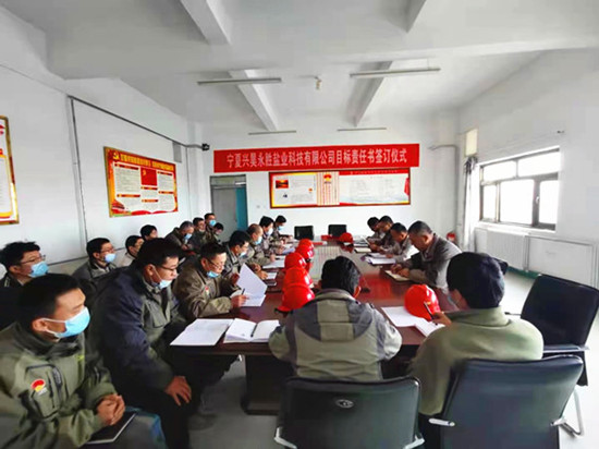2021 年 1 月 7 日 15:30,寧夏興昊永勝鹽業(yè)科技有限公司召開了2021年首次安委會(huì)擴(kuò)大會(huì)議暨安全生產(chǎn)目標(biāo)責(zé)任書簽訂儀式。會(huì)議由公司總經(jīng)理主持,公司安委會(huì)全體成員及技術(shù)員以上人員參加了本次會(huì)議。