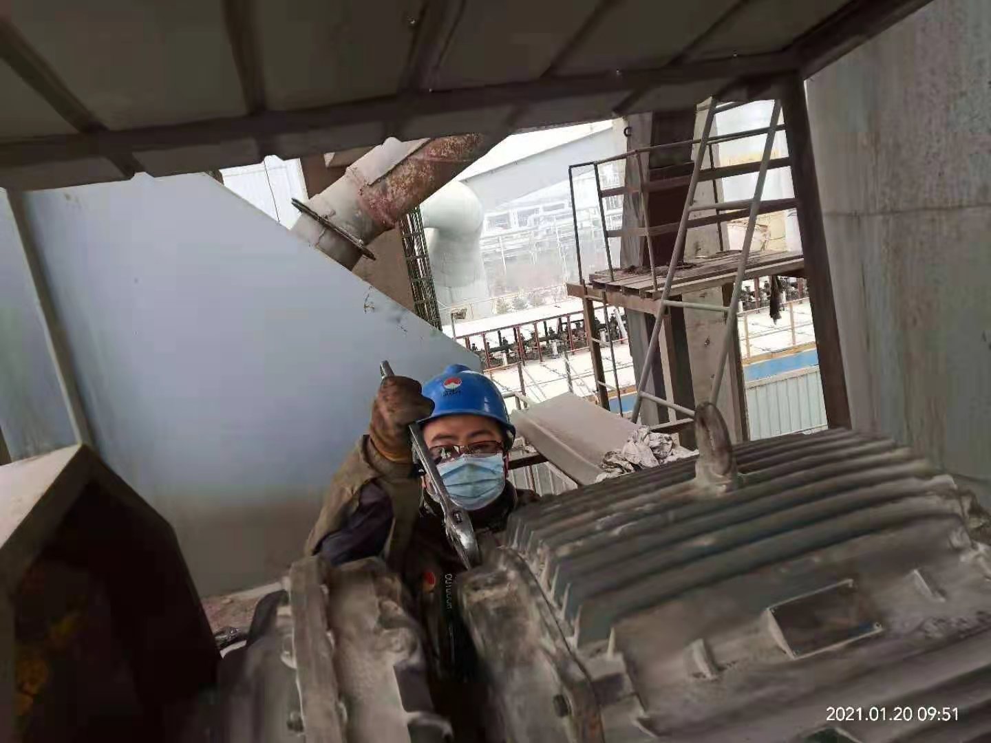 檢修作業(yè)全程跟蹤,一天一夜檢修下來,有睡在辦公室沒回家的,也有吃飯就在作業(yè)現(xiàn)場……比比皆是。總經(jīng)理吳紅衛(wèi)更是如此,一個作業(yè)一個作業(yè)現(xiàn)場轉(zhuǎn)上轉(zhuǎn)下,從2026提升機(jī)作業(yè)點到回轉(zhuǎn)窯主傳減速機(jī),再到篦冷機(jī)、煤磨、烘干破、預(yù)熱器、2301、2323、2401提升機(jī)以及高溫風(fēng)機(jī)、回轉(zhuǎn)窯窯內(nèi)及燃燒器檢修現(xiàn)場,指導(dǎo),建議,一直值守在現(xiàn)場,忙著跟工人們同時收工,一整晚都未歸宿就寢室。工人們,裝置長擔(dān)心他的身體,時常提醒讓他回去休息一下,喝口水,而他放心、安慰大家說,“我和大家一樣的心情,早完工,產(chǎn)量就能早生產(chǎn)一點,我們后續(xù)生產(chǎn)就能輕松一點,大家加油”。一直以來,他和這個班子成員、工人們一起頂著嚴(yán)寒,一直堅守在現(xiàn)場安全履職和協(xié)調(diào)把控檢修進(jìn)度,不厭其煩的一次次的詳細(xì)交底,直到一項一項設(shè)備檢修更換完畢。
