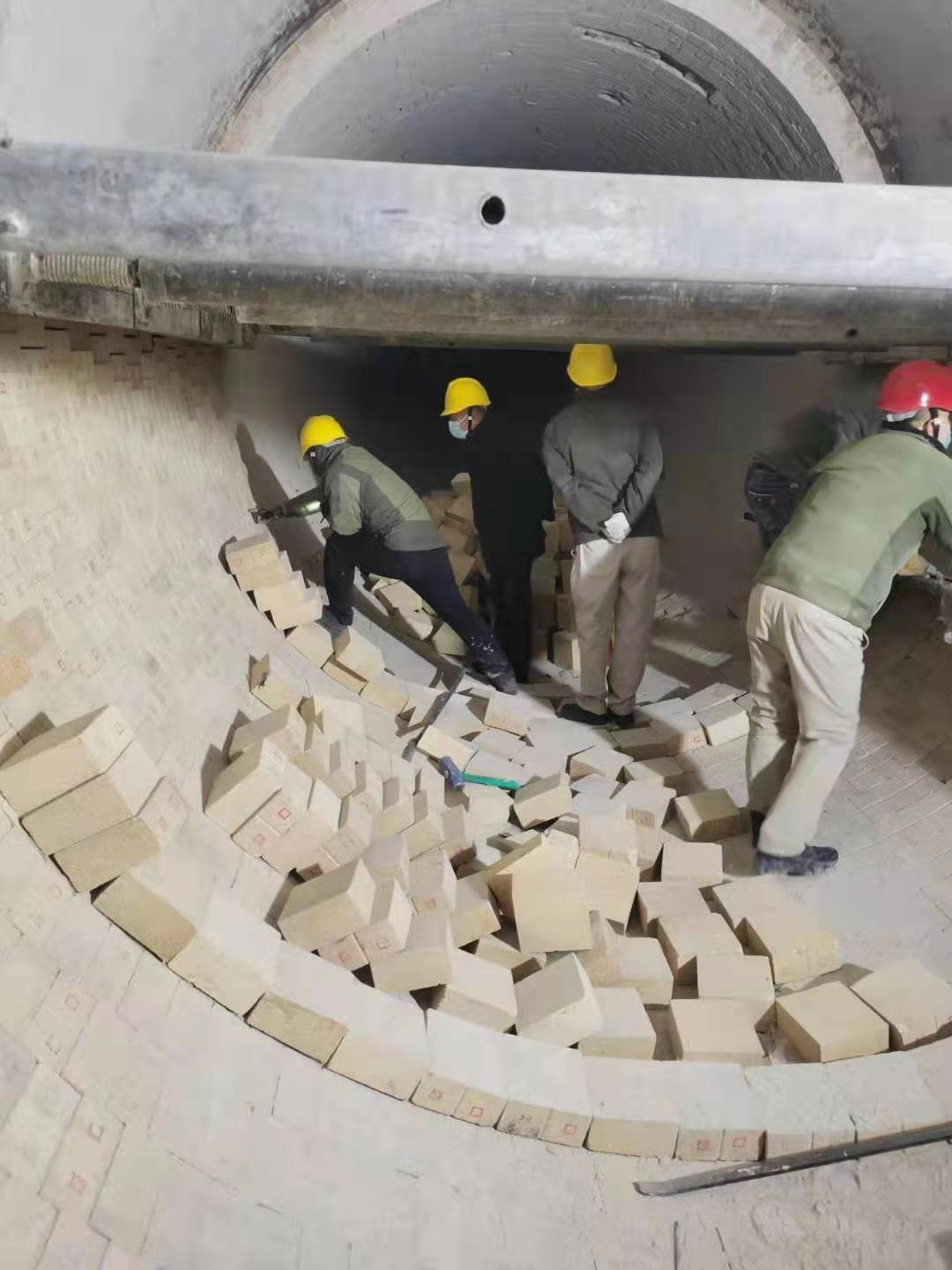 入窯鉸刀更換結(jié)束后,幾名維修工再一次細(xì)致的對(duì)鉸刀附屬設(shè)備進(jìn)行檢查,確;剞D(zhuǎn)窯開(kāi)啟后入窯鉸刀能夠長(zhǎng)周期穩(wěn)定運(yùn)行。回轉(zhuǎn)窯內(nèi),平時(shí)的崗位巡檢操作工變身砌磚師傅,對(duì)窯磚進(jìn)行砌筑。大家配合默契,像極了從事砌磚行業(yè)多年的老師傅。窯頭平臺(tái)上,頂著寒風(fēng)搬磚的是各裝置協(xié)調(diào)的員工。一方有難八方支援,不管回轉(zhuǎn)窯還是電石爐,都是資源再生公司的設(shè)備。哪兒檢修,其他裝置馬上協(xié)調(diào)人員配合。一次檢修就是一次考驗(yàn),不僅要保安全保進(jìn)度,還要保證檢修質(zhì)量。各級(jí)管理人員在保證安全的前提下對(duì)窯磚砌筑質(zhì)量進(jìn)行檢查,確保檢修質(zhì)量。