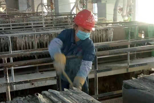 盛夏季節(jié),驕陽似火,熱浪襲人,如火的七月,高溫侵襲著整個大地。而資源再生公司員工卻頂高溫,冒酷暑,堅守在自己的工作崗位上。他們忙碌的身影在裝置不停的穿梭,形成一道亮麗的風(fēng)景。走進水泥系統(tǒng)壓濾三樓,撲面而來的熱浪會讓人立即感覺到這里的溫度比室外還要高許多,各類生產(chǎn)設(shè)備不遺余力地散發(fā)著自身的熱量。員工們早已是汗流浹背,他們不顧額頭流淌的汗水,精心的按工藝流程操作,確保安全高效的生產(chǎn)任務(wù)。