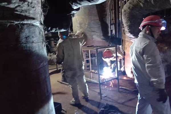 此時隆隆的吊車聲響徹在檢修現(xiàn)場。檢修作業(yè)最關鍵的時刻到來了,只見維修班長熟練用割槍切割著設備與框架的支點,通紅的鐵水四處飛濺不時落在他的衣服上,留下黑色的小孔。他也顧不得這些,迅速完成了設備與框架的切割,其他人員也各司其職忙著斷口。隨著吊鉤的慢慢升起設備輕松與框架分離,由于空間狹小吊臂的活動空間有限,吊裝作業(yè)顯得異常的緩慢,這對長時間在寒冷的室外作業(yè)人員是個極大的考驗,伴隨著指揮人員最后的口令下達,舊的再沸器設備被緩緩地放到地上。此時已過中午時分,雖然大家早已饑腸轆轆,但是每個人的臉上洋溢著笑容,因為他們深深的懂得,只有經(jīng)歷了艱辛的拼搏,才會收獲成功的喜悅。