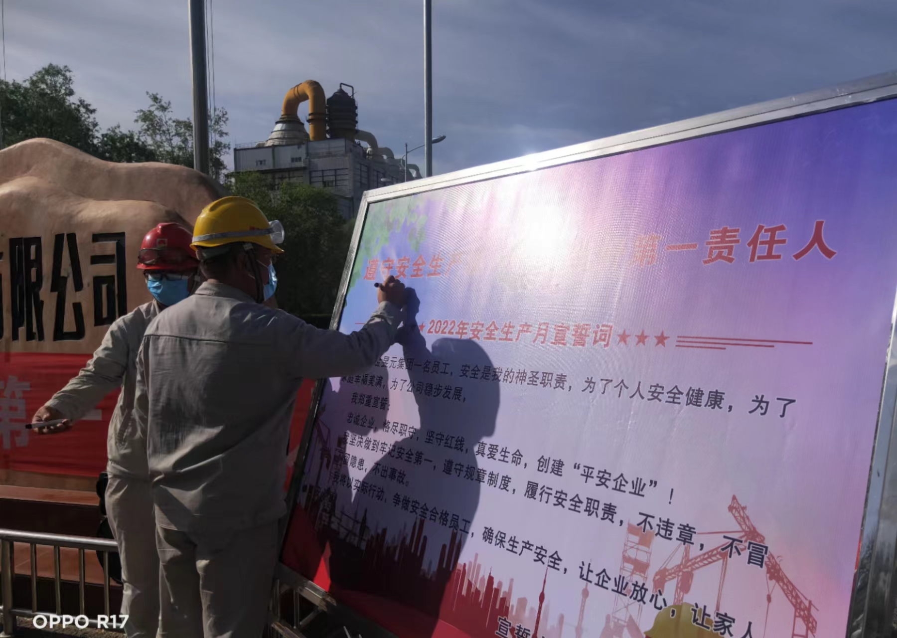 啟動儀式上,安全總監(jiān)帶領全體參會人員進行了莊嚴宣誓,每一位員工都做出了自己對待安全工作的承諾,并簽下自己的姓名。