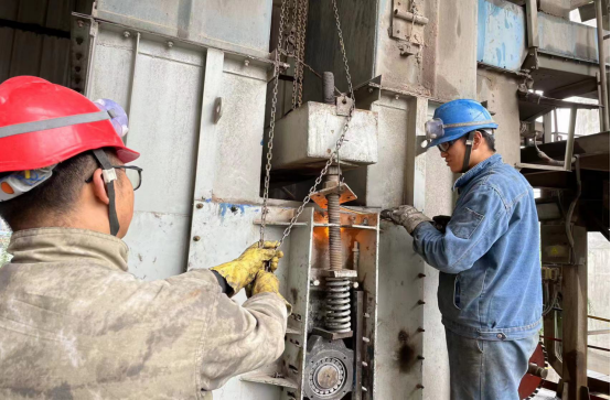 從9月14日00時(shí)00分到9月30日8時(shí)26分回轉(zhuǎn)窯點(diǎn)火升溫,再到10月1日00時(shí)40分回轉(zhuǎn)窯投料,資源循環(huán)公司圍繞回轉(zhuǎn)窯內(nèi)耐火材料更換施工、更換液壓擋輪、烘干破工藝管道、動(dòng)態(tài)選粉機(jī)內(nèi)耐磨涂層修復(fù),更換出口管道及膨脹節(jié),補(bǔ)焊殼體內(nèi)襯、篦冷機(jī)側(cè)墻、煙室斜坡、分解爐錐部、煙室縮口、三次風(fēng)管內(nèi)部、窯口澆注料的澆筑、1909提升機(jī)實(shí)施大修,更換整套板鏈、部分料斗、尾輪、全廠11臺(tái)變壓器除塵及試驗(yàn)、窯尾在線監(jiān)測(cè)系統(tǒng)安裝、調(diào)試等16個(gè)重點(diǎn)大修項(xiàng)目,歷時(shí)16天,在全體參檢工友們不辭辛苦、夜以繼日的拼搏奮斗下,按時(shí)間節(jié)點(diǎn)安全有序圓滿完成59項(xiàng)檢修項(xiàng)目,其中小修18項(xiàng)、中修25項(xiàng)、大修16項(xiàng),為圓滿實(shí)現(xiàn)“降本降耗,開源節(jié)支”活動(dòng)奠定了堅(jiān)實(shí)的運(yùn)行基礎(chǔ)。