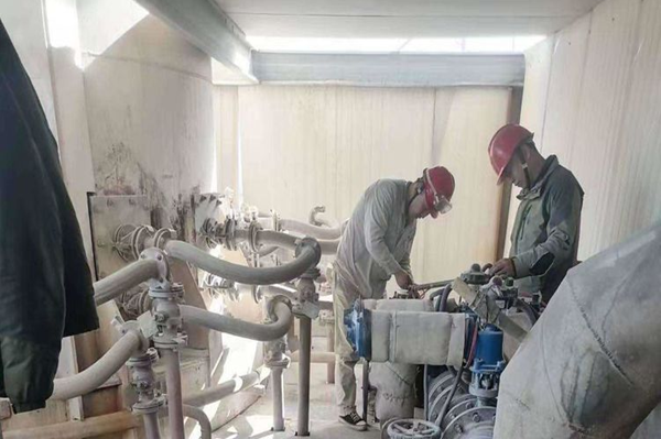 動力裝置檢修人員可謂是上得橋架,下得消防井,游走于水、陸、空之間。全力以赴更換2#白灰窯環(huán)管快切閥門,一絲不茍移換凈化配電室配電柜,已經(jīng)更換及清洗部分填料工作和修復(fù)的冷卻塔集水盤就可以展現(xiàn)他們水、陸、空作業(yè)的能力。還有狹小空間里作業(yè)的人員,切割、焊接毫無妨礙。原料裝置也不遜色,更換布袋這份工作都已經(jīng)如囊中取物,不管是除塵器還是窯前倉,都已經(jīng)被他們輕輕松松完成。力氣是他們特有的魅力,細(xì)心是他們工作的態(tài)度,用肥皂水查找并消除噴槍層漏點,用抹布擦凈每臺設(shè)備。