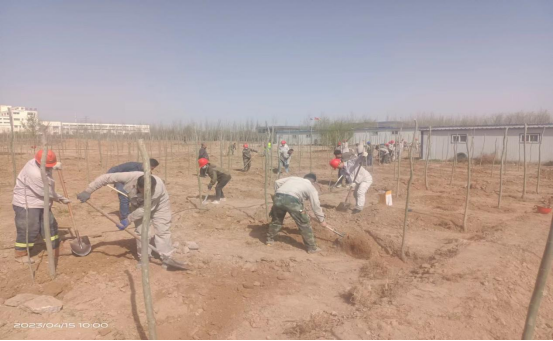 公司每年的春季都會制定本年度的環(huán)保節(jié)能目標(biāo),對廠區(qū)內(nèi)的綠化設(shè)施進(jìn)行完善,加大綠化面積,組織一年一度的植樹活動。由于公司主要是生產(chǎn)建筑材料的,以普通硅酸鹽水泥和水泥原材料熟料為主的化工企業(yè),必不可少的廠區(qū)硬化占到了一定的面積,導(dǎo)致綠化覆蓋率較少。但是就是這樣的條件下,公司領(lǐng)導(dǎo)還是在有限的廠區(qū)綠化面積里盡可能的多種樹,改善員工的工作生產(chǎn)環(huán)境,保護(hù)環(huán)境衛(wèi)生。公司領(lǐng)導(dǎo)組織員工在原料堆廠的邊上再種一排楊樹,由于原料廠邊上常年受運(yùn)輸車輛的碾壓,地質(zhì)堅(jiān)硬,鐵鍬等普通挖土工具挖土困難,導(dǎo)致種樹進(jìn)度緩慢。于是公司領(lǐng)導(dǎo)就協(xié)調(diào)安排了挖掘機(jī)進(jìn)行挖樹坑,挖好了樹坑,就安排各裝置對于各自區(qū)域的樹苗進(jìn)行移栽,經(jīng)過大家的齊心協(xié)力,樹苗都被小心翼翼的放到了新挖的樹坑里,你扶樹苗,我埋土,好不熱鬧,在大家共同努力下一排整齊的樹苗矗立在原料堆場的邊上。守護(hù)著這邊我們?yōu)橹畩^斗的熱土。