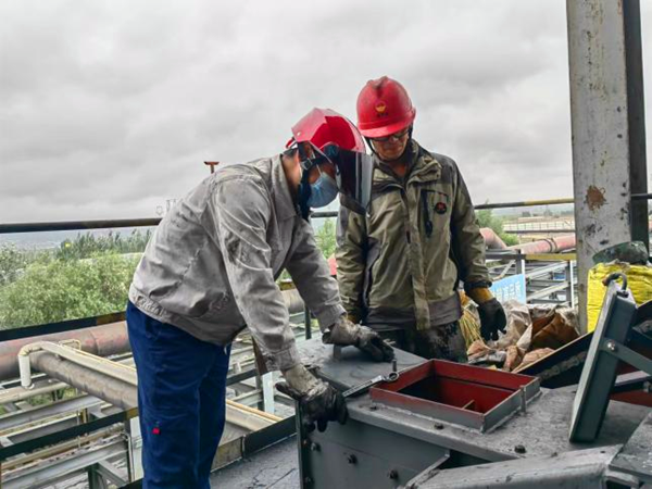 他們分工明確、配合默契,或是準備檢修工具和檢修物資,亦或是聯(lián)系安全員檢查落實安全措施。面對復雜艱苦的作業(yè)環(huán)境,他們在做好個人安全防護前提下,在車間設備上攀爬穿梭,認真對照方案實施作業(yè),保質保量完成每一項檢維修任務。