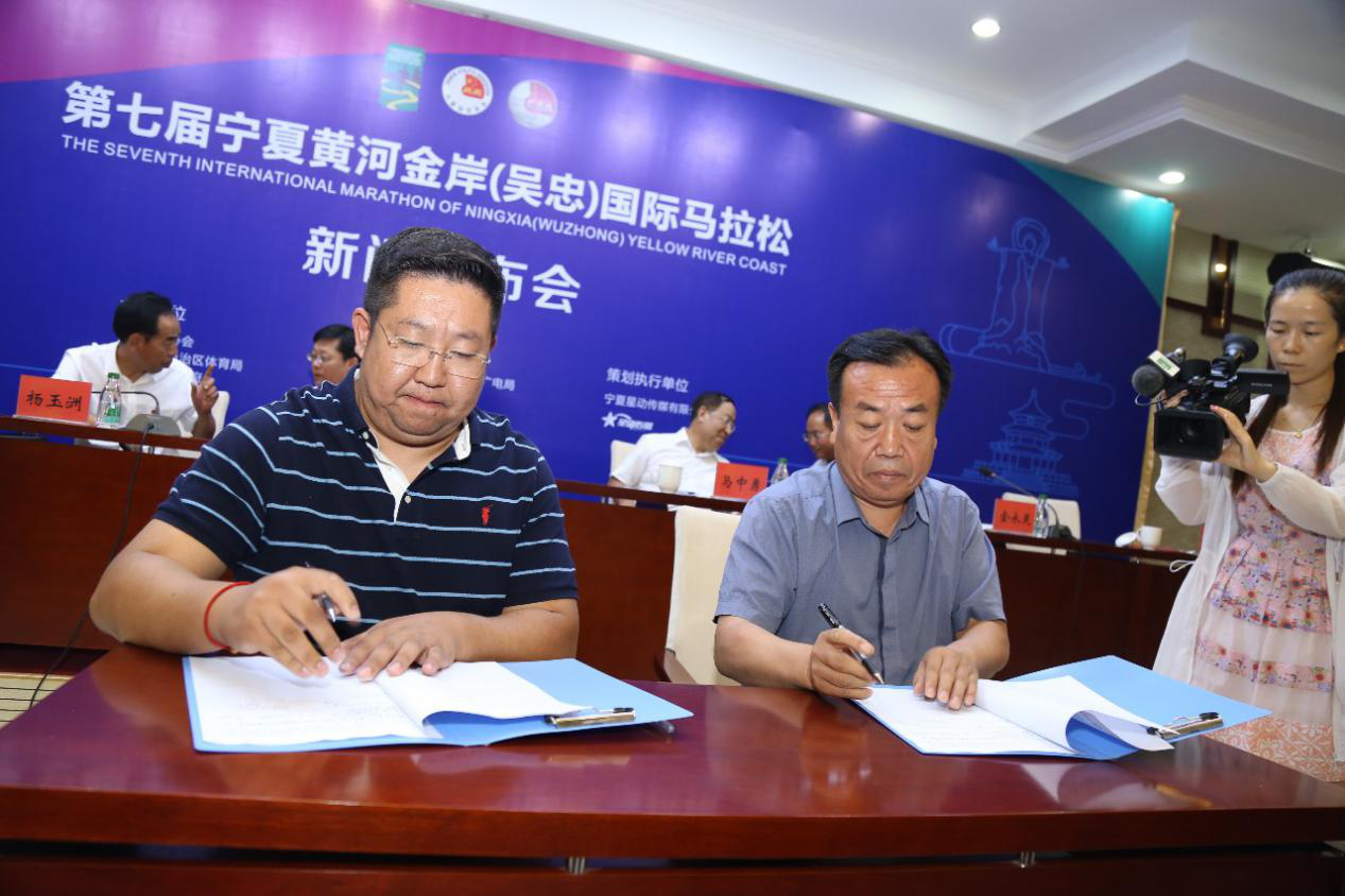 (新聞發(fā)布會現(xiàn)場,“寧馬”冠名企業(yè)寧夏金昱元化工集團(tuán)有限公司與運(yùn)營方星動(dòng)傳媒進(jìn)行了簽約儀式)