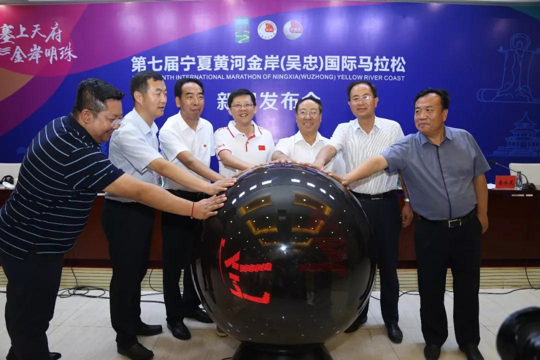 (與會領(lǐng)導(dǎo)共同啟動(dòng)“第七屆寧夏黃河金岸(吳忠)國際馬拉松”盛會)