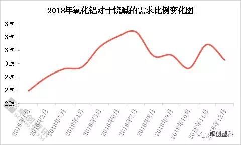 根據(jù)卓創(chuàng)監(jiān)測,2018年氧化鋁對于燒堿的需求占比達到33%-34%,如上圖所示,2018年大多數(shù)月份氧化鋁行業(yè)對燒堿需求比例均超過30%,其中個別月份最高需求占比達到35.81%左右,最少的月份需求占比也在27%左右。毫無疑問,氧化鋁是目前燒堿下游需求行業(yè)中的“頂梁柱”般的存在,對燒堿市場起到明顯剛性需求支撐,是燒堿行業(yè)最值得信賴的需求點。
