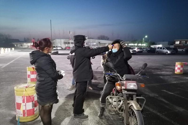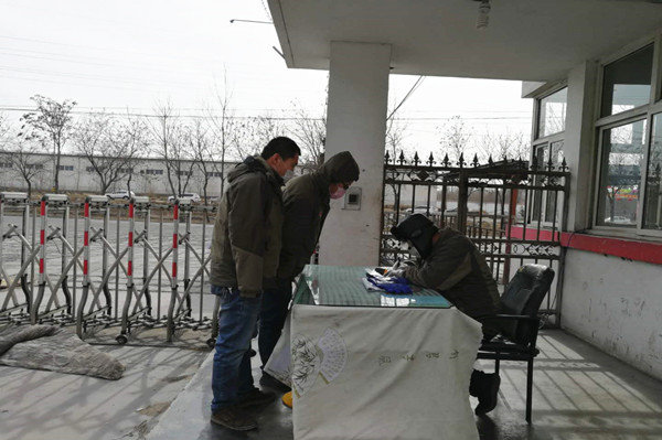 2月13日,氣溫驟降,在片區(qū)北大門新增檢測點(diǎn),由于值班室是移動(dòng)房,沒有暖氣,劉聰俊和侯進(jìn)在晚上頂著寒冷值班。盡管天氣嚴(yán)寒,但他們依然堅(jiān)守崗位,一絲不茍地對(duì)通行人員進(jìn)行體溫測量和信息登記,嚴(yán)把疫情防控關(guān)。和他們一樣,所有檢測點(diǎn)的保衛(wèi)科人員都默默無聞地與疫情防控和嚴(yán)寒做著斗爭。