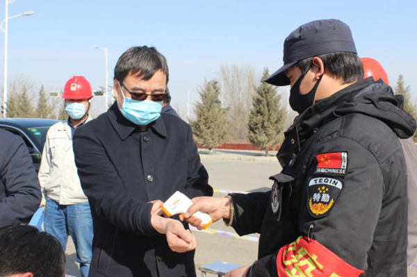 朱洪軍一行在疫情防控檢測點(diǎn)按檢測程序測量體溫、登記信息,詳細(xì)查看了疫情防控登記臺賬并到工作現(xiàn)場檢查。經(jīng)過細(xì)致檢查,對固原片區(qū)疫情防控工作給予了充分肯定。