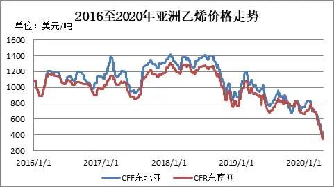 圖1 2016至2020年亞洲乙烯價(jià)格走勢(shì)