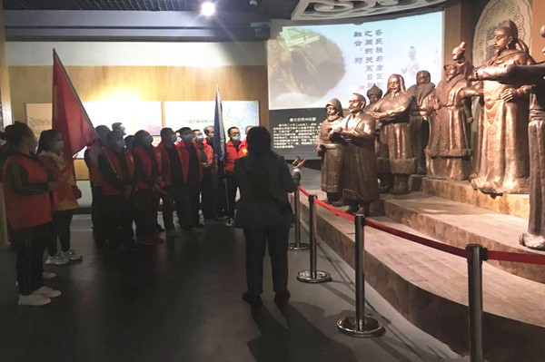 黨旗與金昱元旗幟高高飄揚(yáng),黨員們身著紅色志愿者馬夾,手持五星紅旗,排著整齊的隊(duì)伍接受防疫檢查。展覽廳里,大家認(rèn)真聆聽古靈州歷史文化、吳忠革命史講解,或駐足細(xì)心觀賞歷史文物,或三五一群交流體會(huì)。大家悉心領(lǐng)略地方文化史,回顧紅色歷史,緬懷革命先烈,汲取前行力量。恰逢明年是中國(guó)共產(chǎn)黨建黨100周年和金昱元集團(tuán)建企30周年,全體黨員重溫了入黨誓詞,黨支部書記向全體黨員分享了30年來(lái)企業(yè)沐浴改革開放春風(fēng),在建設(shè)、改革、發(fā)展過(guò)程中的故事和取得的成就。