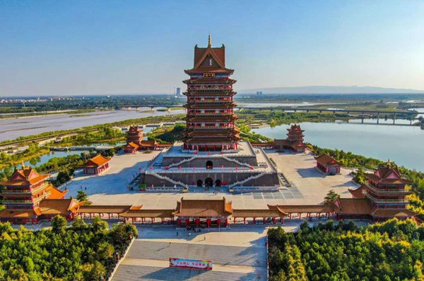 參觀完吳忠市博物館,大家又驅(qū)車來(lái)到青銅峽標(biāo)志性建筑——?dú)鈩?shì)恢弘的黃河樓,受到黃河樓旅游公司領(lǐng)導(dǎo)的熱情接待,為支持黨建工作,黃河樓旅游公司免去全員門票,并全程安排講解。
