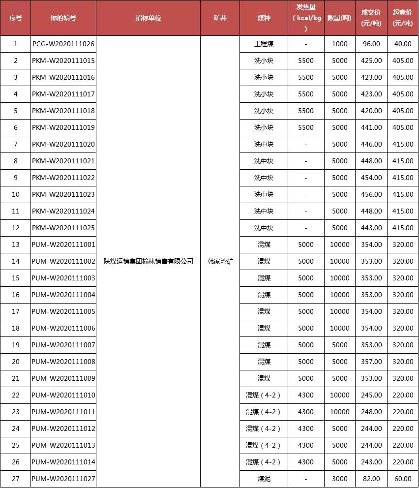 一、韓家灣煤礦產(chǎn)品信息(最新價(jià)格)