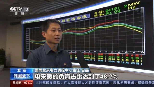 國網(wǎng)北京電力調(diào)控中心主任 白晶:經(jīng)過我們測算,在大負荷期間,電采暖的負荷占比達到了48.2%,也說明北京清潔電能采暖的城市供電特性日趨明顯。目前,北京電網(wǎng)運行平穩(wěn),供應量充足,能夠滿足城市供電需求。