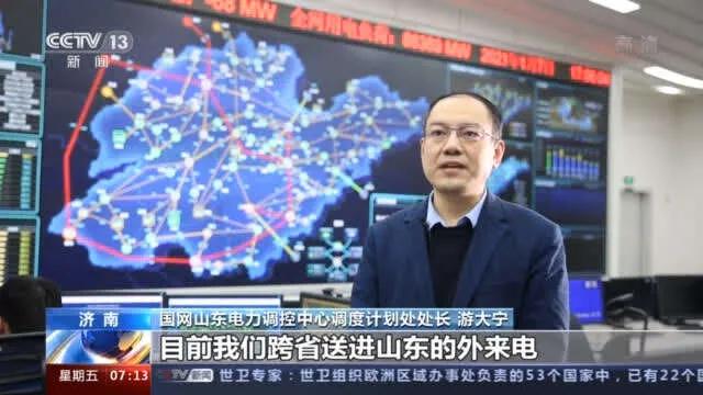 國網(wǎng)山東電力調(diào)控中心調(diào)度計劃處處長 游大寧:目前,我們跨省送進山東的外來電,占到了所有負荷的22%,并且,全省光伏、風電出了很大力,首次突破1800萬千瓦,占比接近20%,為我們保障用電安全提供了有力支撐。