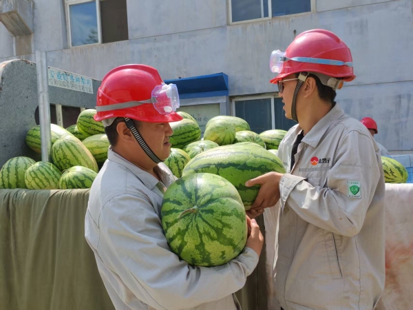 高溫猛如虎,關(guān)愛深似海。公司領(lǐng)導(dǎo)把西瓜和飲料等慰問品送到員工手中,將濃濃關(guān)愛送到員工心中。公司領(lǐng)導(dǎo)對員工們致以親切的問候,對他們在酷熱的夏天堅守崗位、默默奉獻(xiàn)致以崇高的敬意。員工們對領(lǐng)導(dǎo)的慰問如飲甘泉,信心倍增。