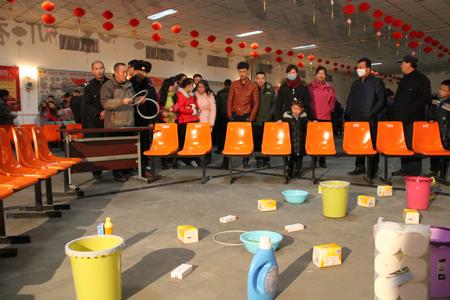 游園活動在每日下午5點40開始,一直舉辦到晚上8點。游園現(xiàn)場熱鬧非凡,活動內(nèi)容豐富多彩,有釣魚、套圈、頂氣球、扔飛鏢、門球、打羽毛球、夾乒乓球、投籃八項趣味游戲;顒蝇F(xiàn)場人頭攢動,員工帶著家人,老人領(lǐng)著孫子,近四百員工及家屬參加活動。各游戲跟前排起了長龍,個個躍躍欲試,歡笑聲、喝彩聲此起彼伏,四處洋溢著節(jié)日喜氣,讓大家感受到了新春的歡樂與祥和。